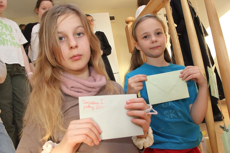 Marysia i Zosia z kopertami "cichego przyjaciela".