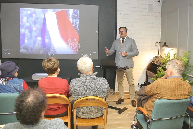 – Sprawa jest oczywista: mamy powinność wobec poprzednich pokoleń, żeby pamiętać o tym, czego nasze pokolenie dokonało. Ale żeby pamiętać, trzeba znać fakty. Jako historyk mogę z czystym sumieniem polecić inicjatywę delegatury koszalińskiego oddziału IPN – mówi Michał Polak. – Ci pasjonaci historii robią świetną robotę, podają rzetelną wiedzę; czy to jest promocja interesującej publikacji historycznej, czy taki wykład popularnonaukowy jak dzisiaj. To jest bardzo potrzebne. Cieszę się, że widzę tutaj dzisiaj zarówno osoby starsze, ale właśnie także młodzież. To jest dla mnie bardzo budujące.