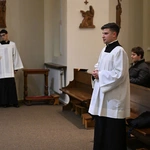 ‒ Założenie sutanny jest wyjątkowym znakiem. Od tego momentu będę bardziej rozpoznawalny jako przynależący do duchowieństwa, choć jeszcze duchownym nie jestem. Wiąże się z tym wielka odpowiedzialność już nie tylko za siebie samego, ale za tę rzeczywistość, którą reprezentuję ‒ mówi Mateusz Huńko, kleryk roku III, który 7 grudnia został obłóczony. ‒ W ogóle dzisiaj odczuwam duży stres. Powoli dociera do mnie to, co się dzieje ‒ mówi szczerze na chwilę przed rozpoczęciem nieszporów.