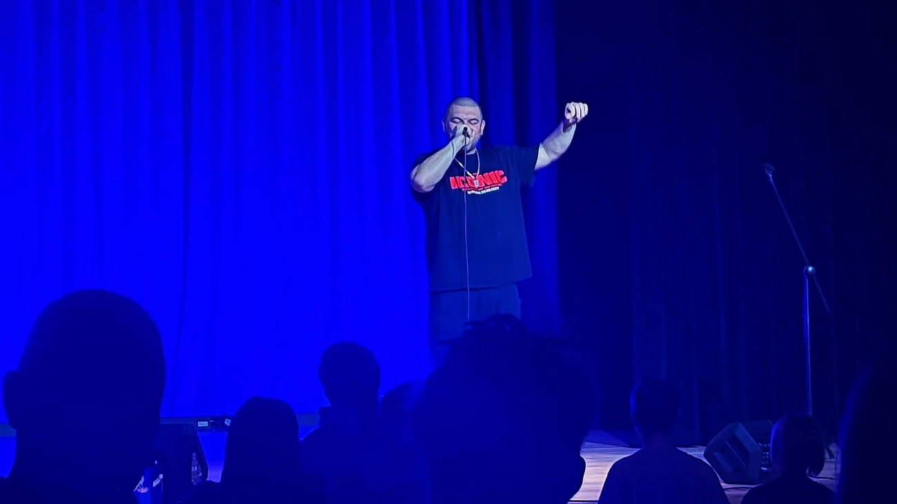 Podczas koncertu w auli Uniwersytetu Pomorskiego Tau tekstami piosenek opowiadał o Ewangelii.