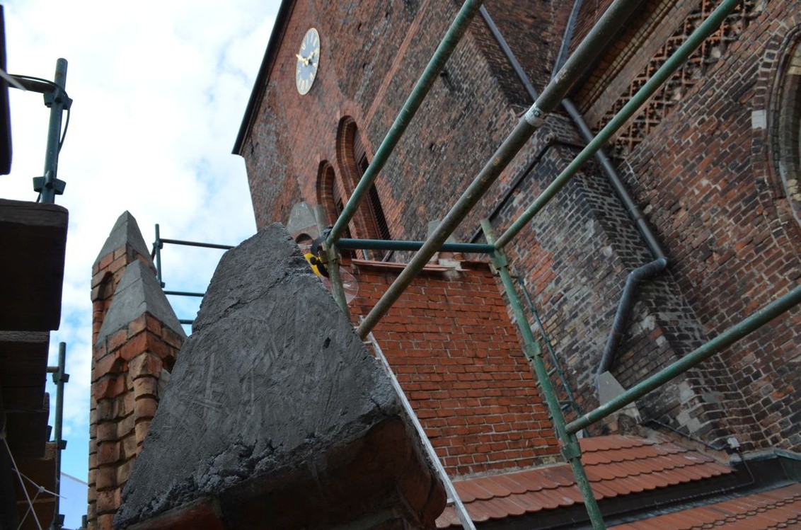 Trwa remont wieżyczek na zewnątrz świątyni.