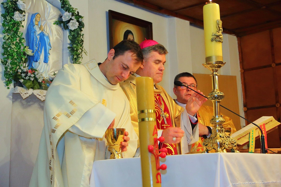 Eucharystią rozpoczęło się liturgiczne spotkanie, zwieńczone poświęceniem placu pod nowy kościół w Krępie Słupskiej.