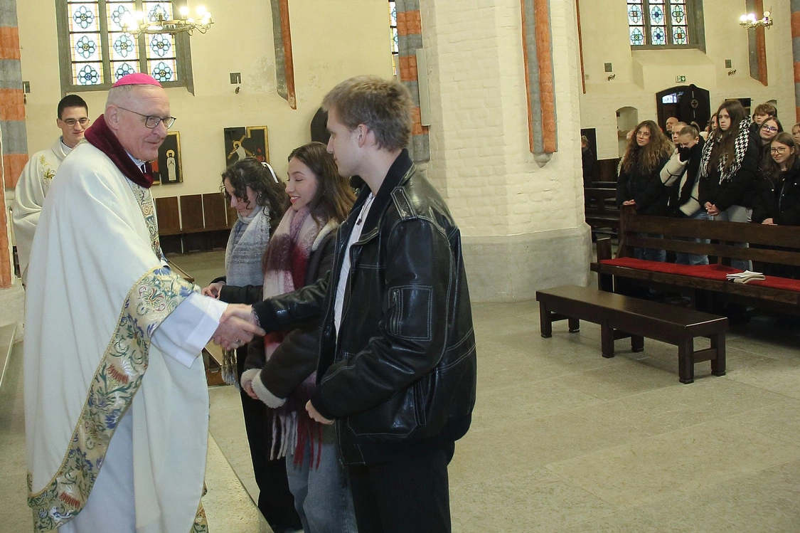 Przy ołtarzu stanęli z biskupem Dajczakiem księża związani z parafią i duszpasterstwem młodzieży.