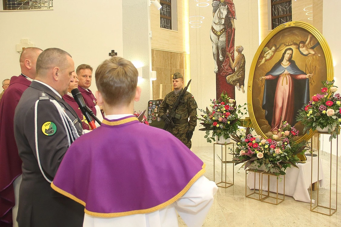 Przedstawiciele parafian, proboszcz oraz dowódca garnizonu Koszalin uroczyście zawierzyli Matce Bożej parafię i garnizon.
